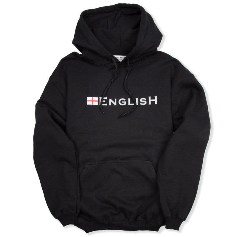 Top quality, double stitched, England hoodie with St George Cross and "English" printed across chest.
